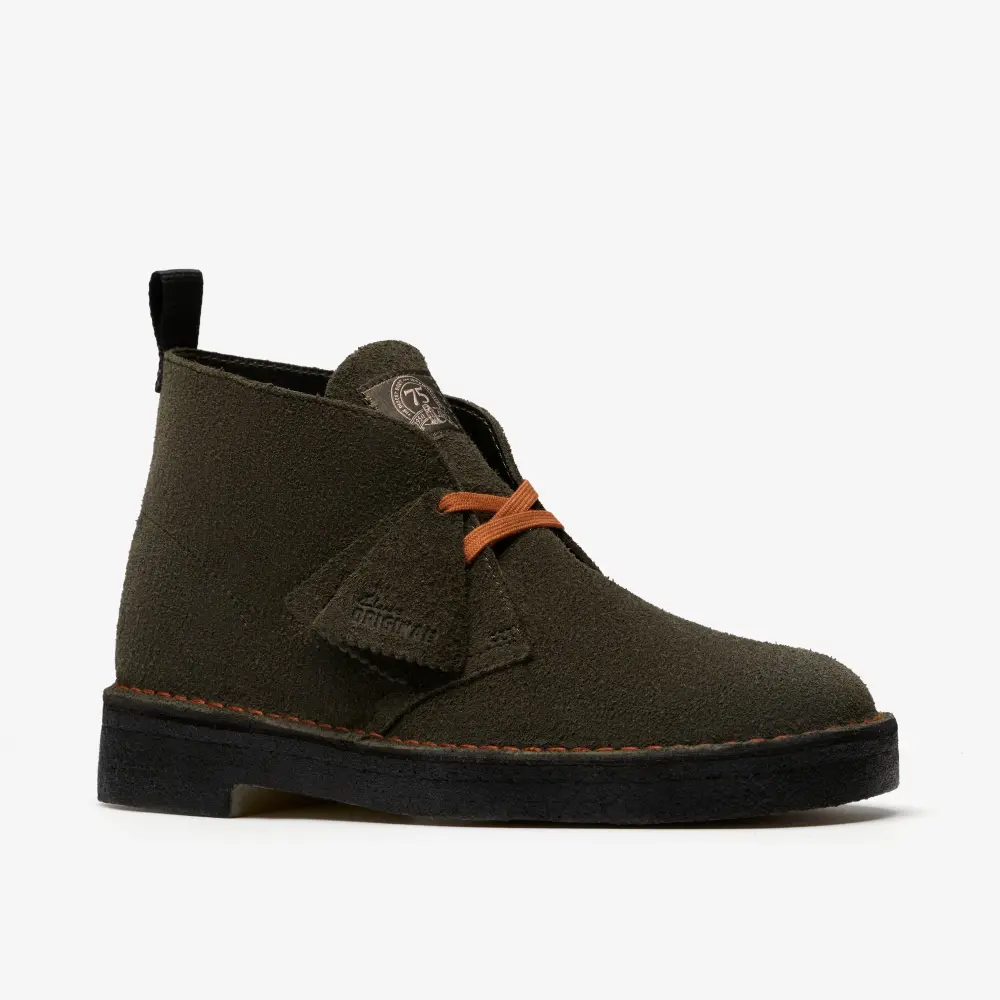 Introducing the Clarks Desert Boot 75th Anniversary Edition, a tribute to 75 years of iconic style. To celebrate this milestone, we’re reintroducing the second archival color – Loden Green.