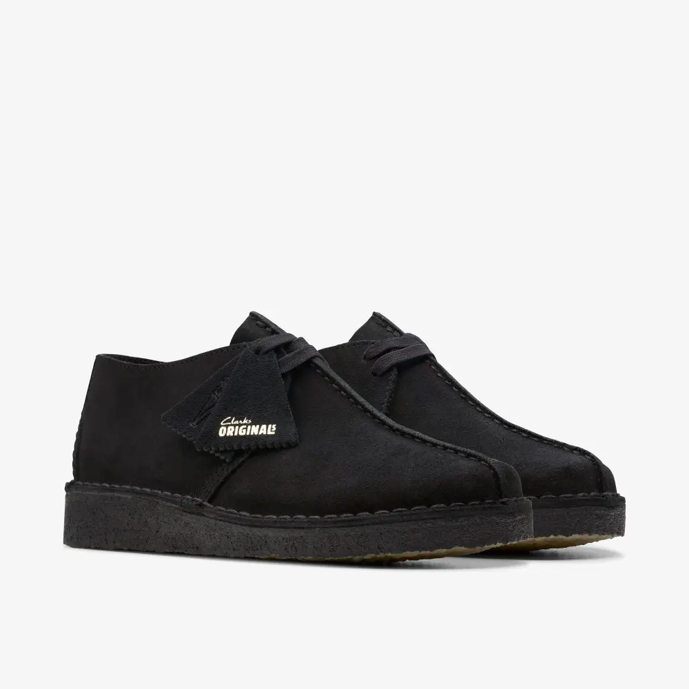 An icon crafted for everyday wear, the Desert Trek returns in timeless black ready for a season of ultra-versatile styling. Butter-soft suede uppers contrast perfectly with its natural crepe sole, while flat laces and our classic fobs lend a casual finish.