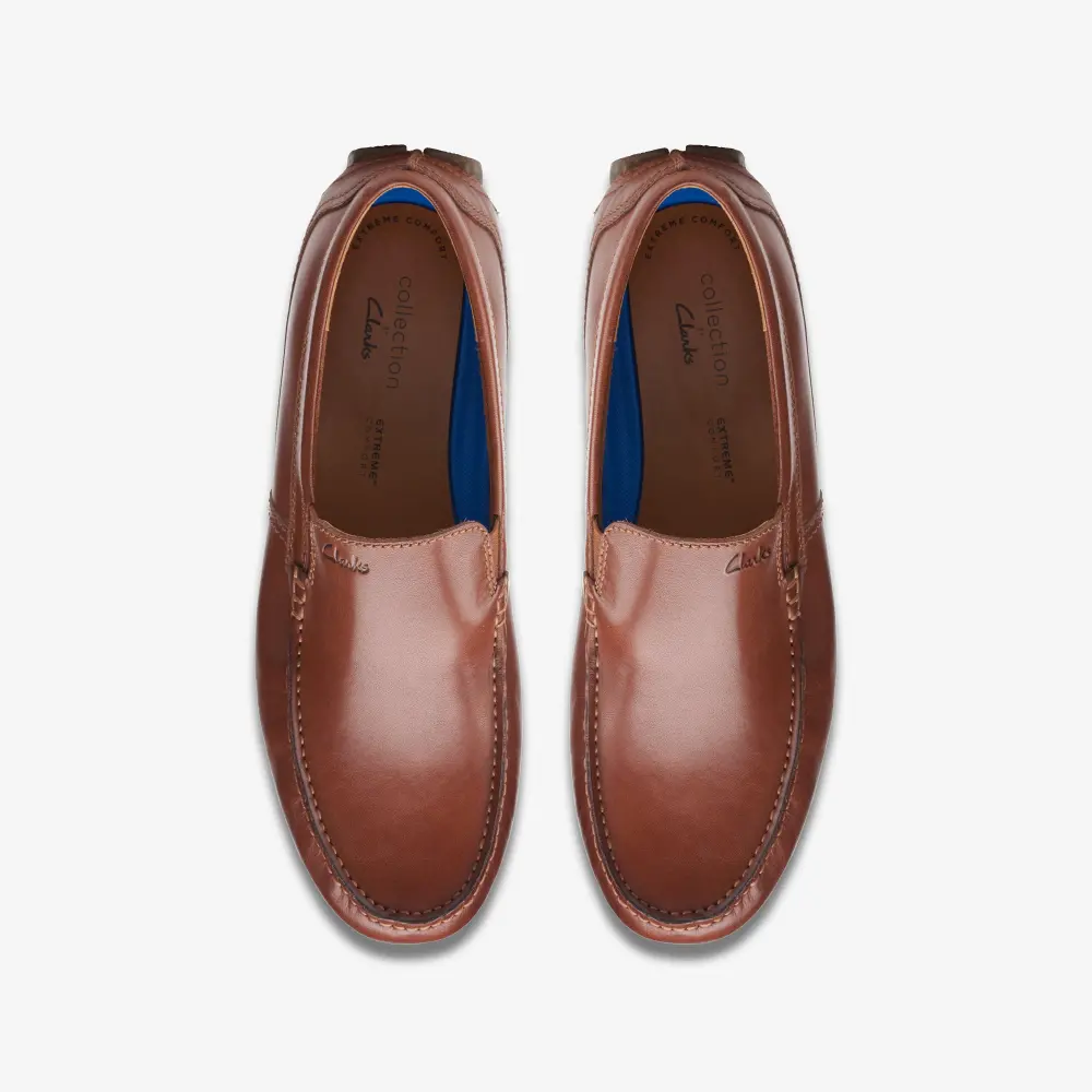 Mens Markman Plain Dark Tan Leather Driving Moc Loafer