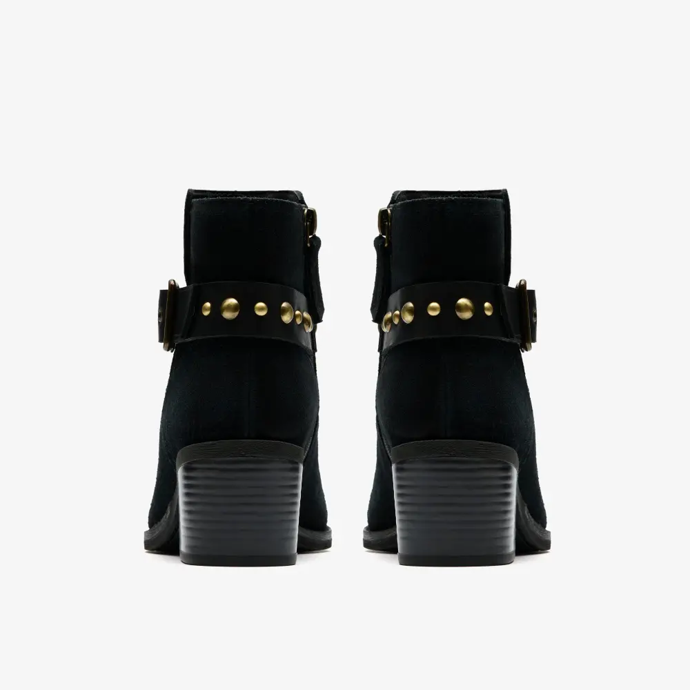 Womens Morzine Buckle Black Suede Ankle Boots