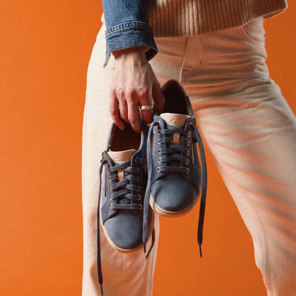 - Blue nubuck and suede upper with blue accents